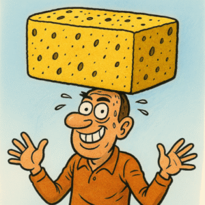 Now, I’m afraid I did not feel I could be recorded wearing a large yellow washing aid. So I went for (2). I claimed that my creative process was entirely different. I was not so much an omniverous sucker – I said – as the victim of serial lightning strikes. If I were to balance anything on my head it would be a long metal object like a golf club. (I believe golfers are among the more frequent victims of that sort of weather.)